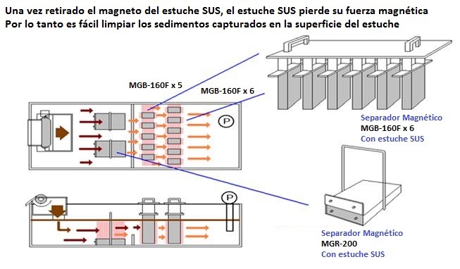 Los contaminantes metálicos finos mezclados en el fluido, se adhieren inmediatamente a nuestros imanes a través de un campo magnético activo